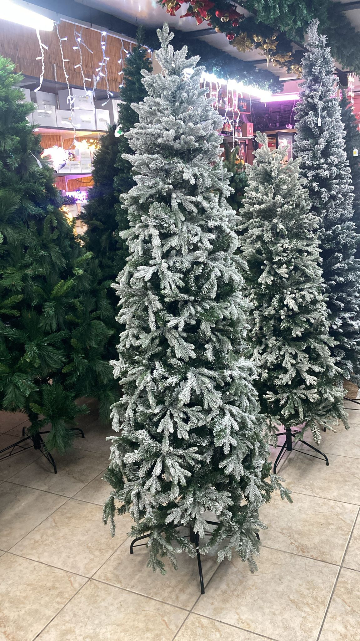 Snow Slim Christmas Tree. Available in four heights: -180cm -210cm -240cm -270cm